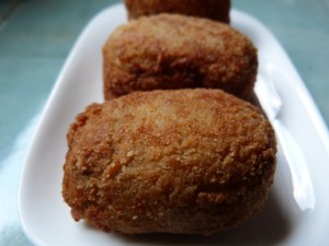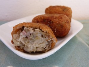 Aquí van les meves croquetes per a la Recepta del 15. Sempre que en faig són de pollastre, aprofitant la carn amb la que faig el brou. Per a aquesta ocasió volia fer alguna cosa diferent, així que vaig estar practicant fins que se m’ocorreren aquestes. Esper que vos agradin, és una recepta molt senzilla, només duen la feina habitual de totes les croquetes casolanes.